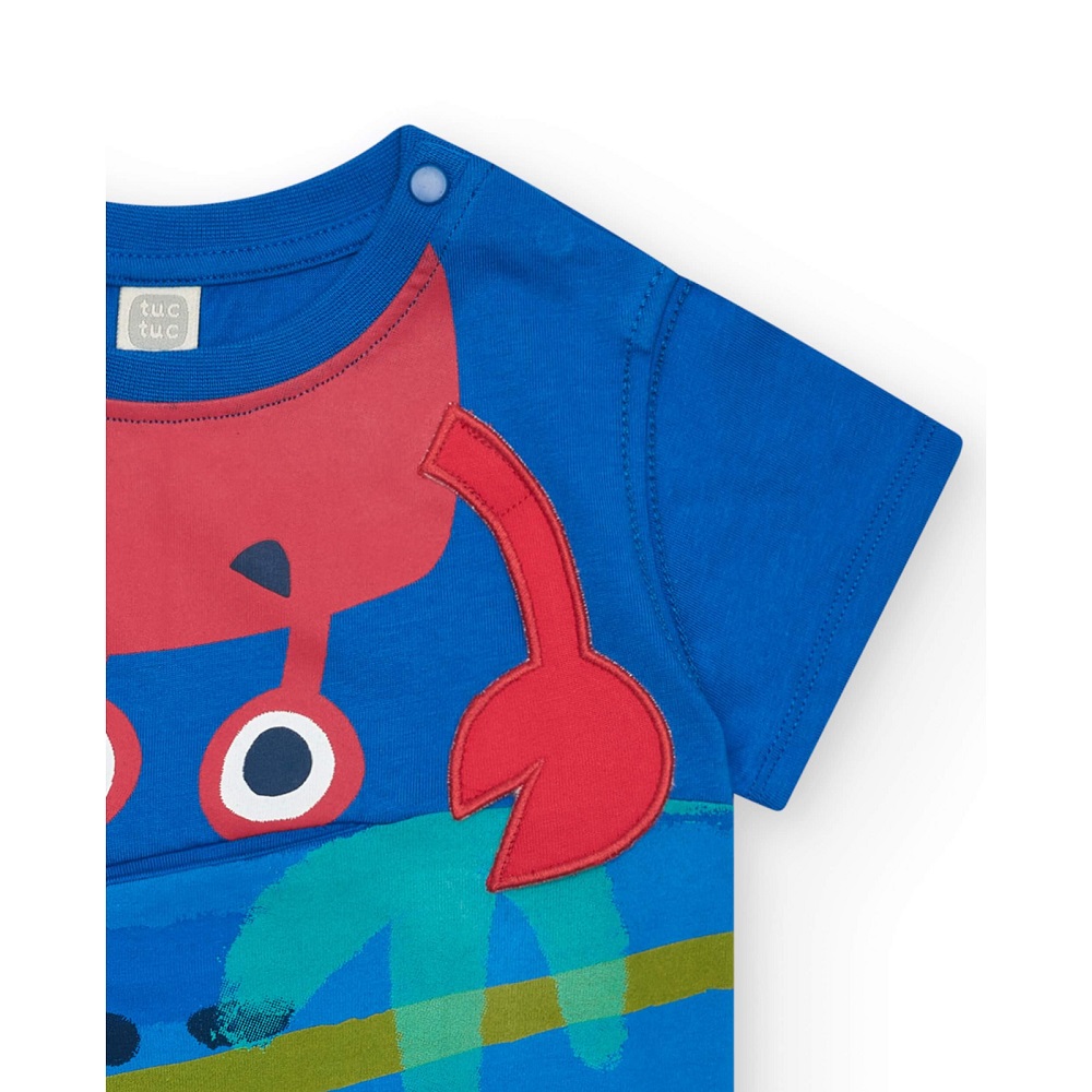 t-shirt a mezza manica in tinta unita con stampa granchio frontale , chele in rilievo e stampa su fondo