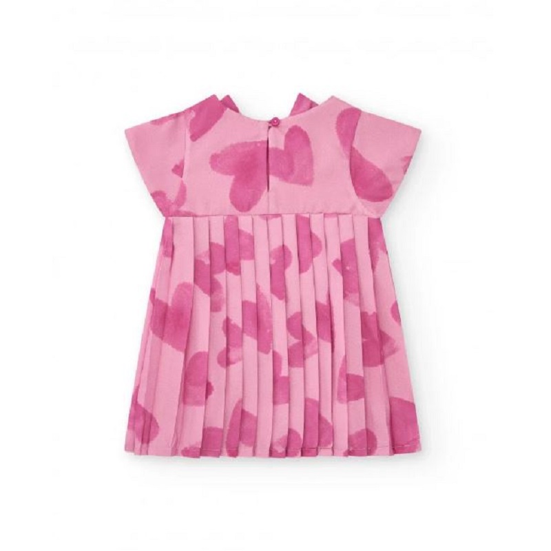 vestito a pieghe dalla fantasia cuori con mezza manica e fiocco sul davanti