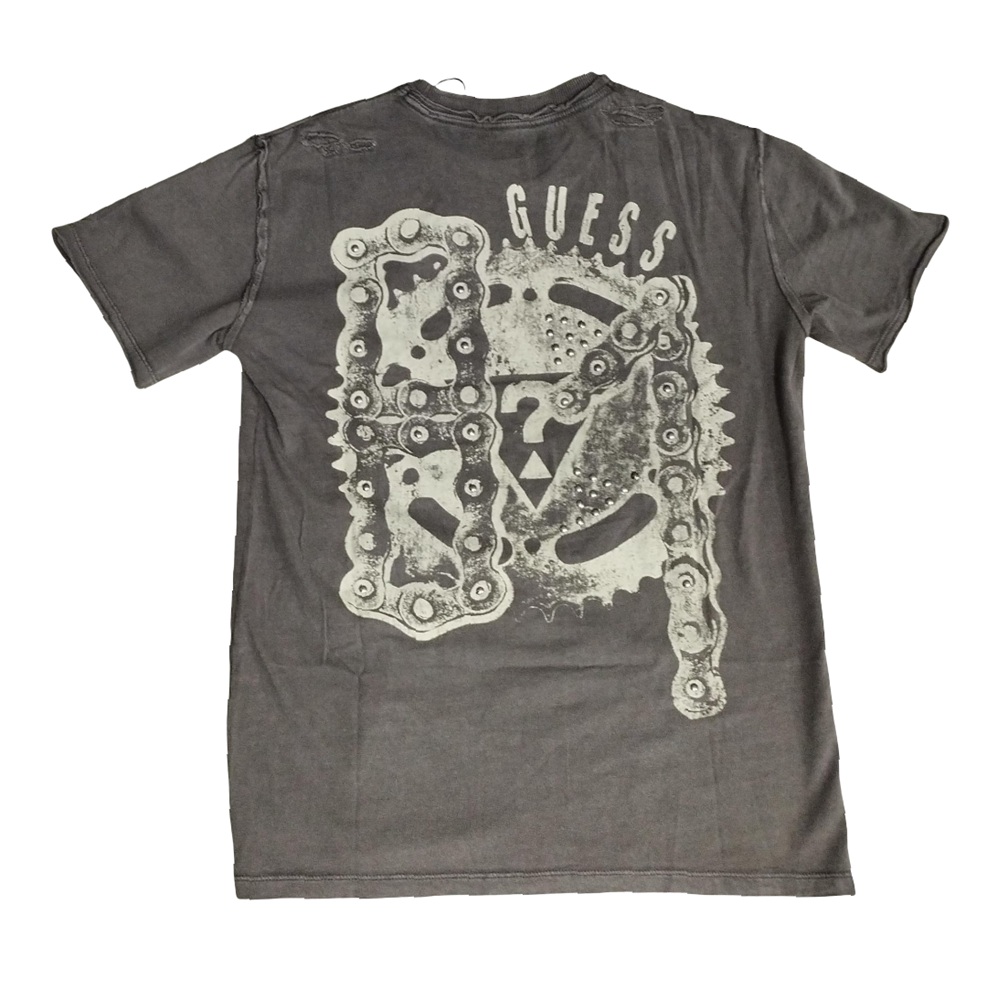t-shirt in tinta unita con mezza manica, ricamo su girocollo e dettaglio finti strappi, stampa posteriore con borchie