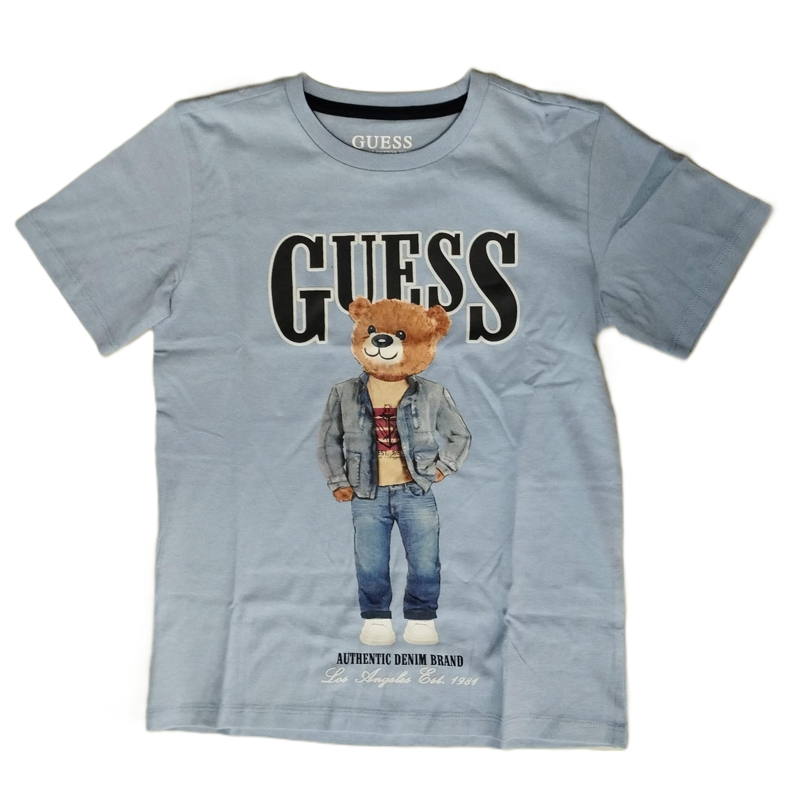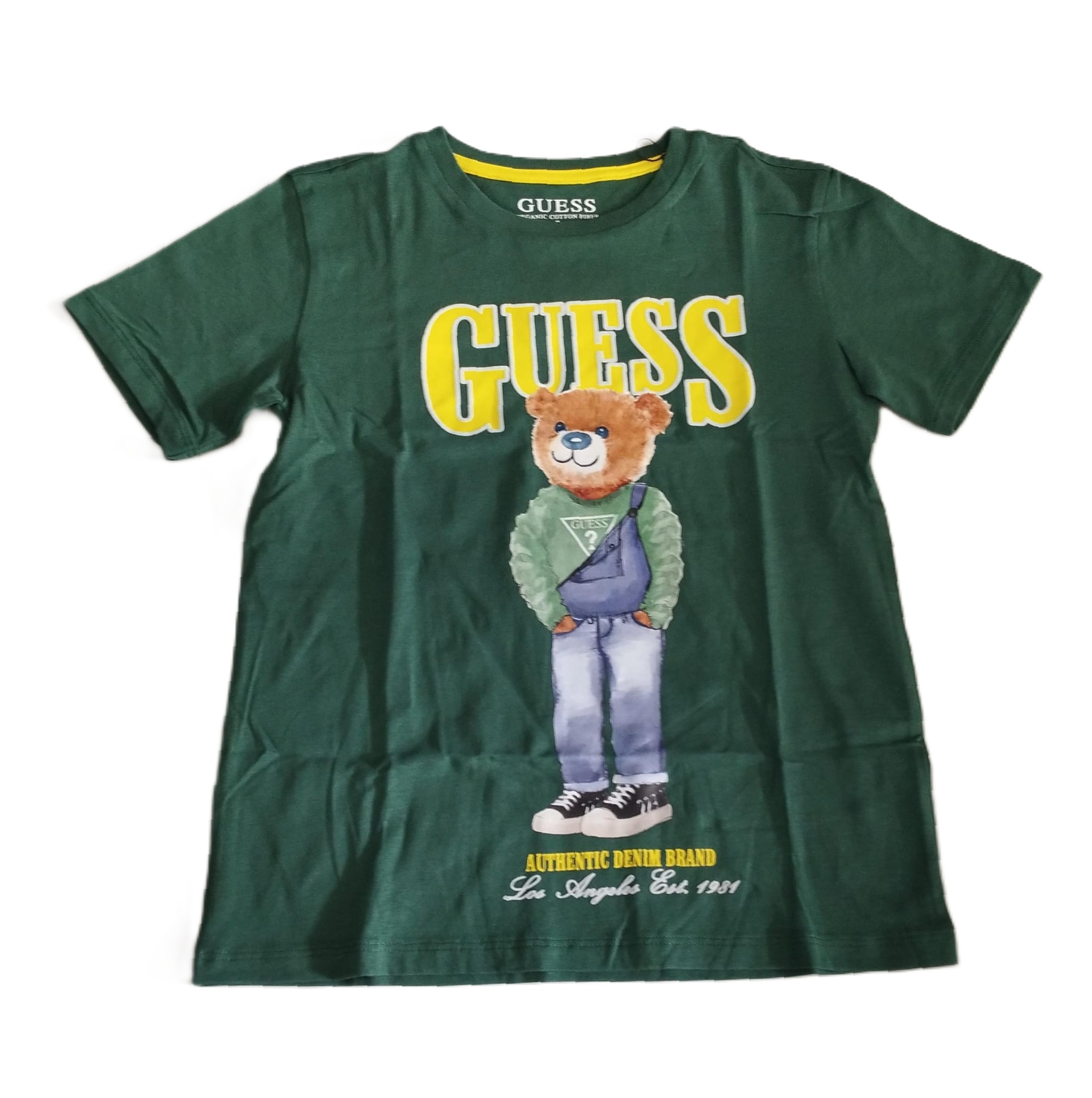 t-shirt a manica corta in tinta unita con logo anteriore e stampa teddy a contrasto