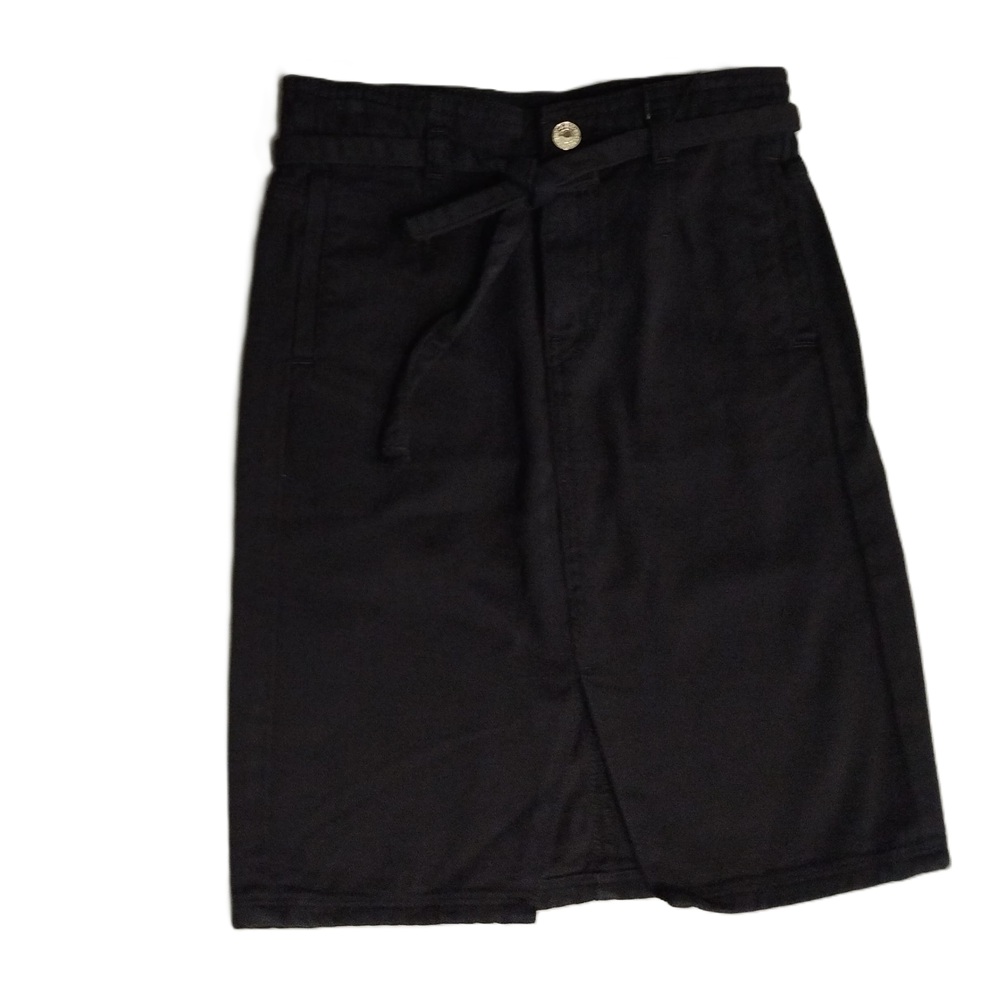 Gonna in denim tinta unita con spacco anteriore, fusciacca in vita e ricamo logo posteriore a contrasto