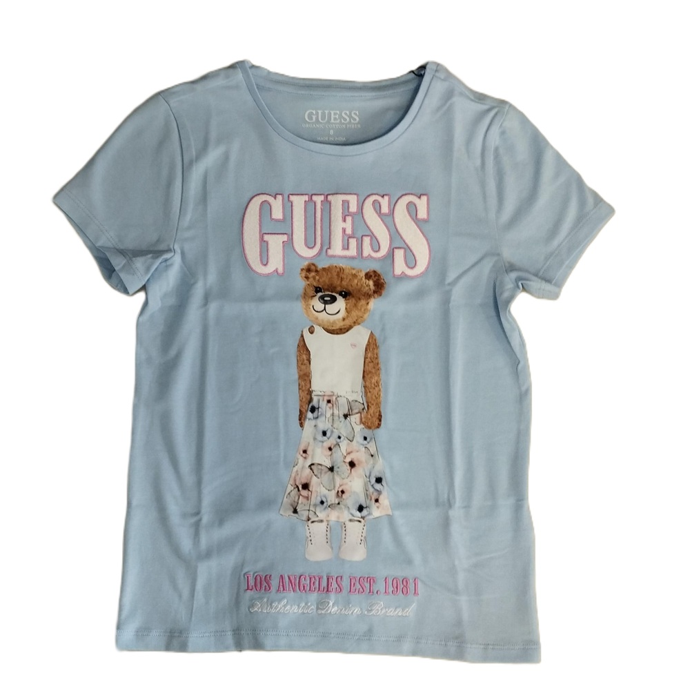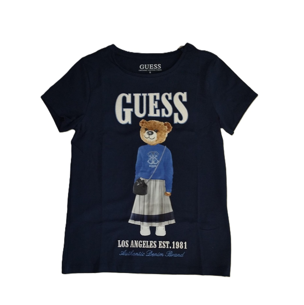 t-shirt a mezza manica in tinta unita con ricamo marchio e stampa teddy sul davanti a contrasto