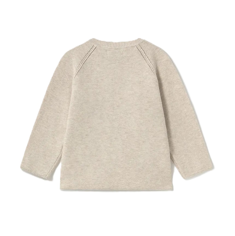 Cardigan in filo tinta unita e scollo a V, bottoni effetto legno