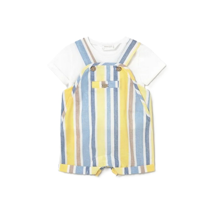 Completo 2 pezzi composto da: t-shirt basic manica corta e salopette rigata