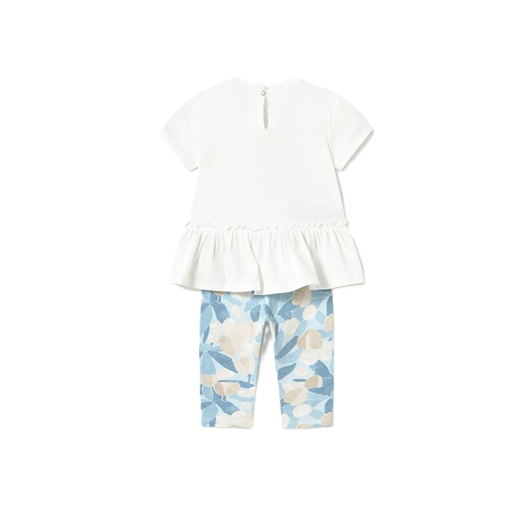 Completo composto da: t-shirt manica corta svasata, fascia per capelli e leggings stampa teddy/fiori
