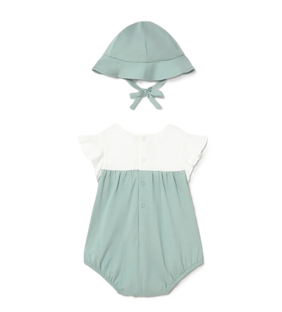 Pagliaccetto bicolore con ricamo fiori e cappello in coordinato