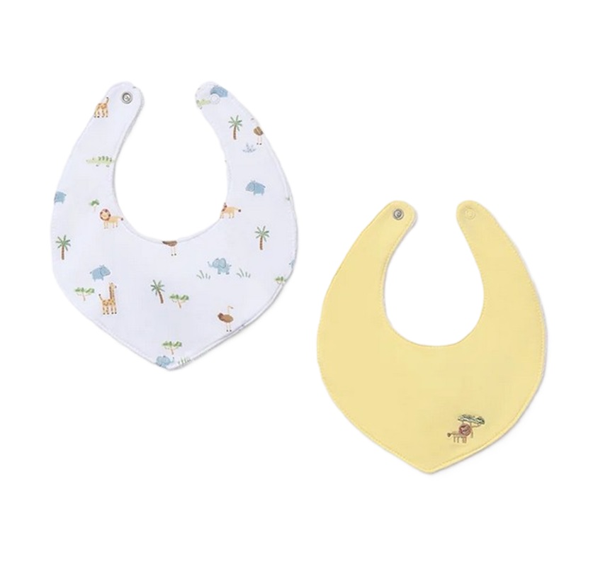 set bavette composto da una in tinta unita e l'altra con stampa all over