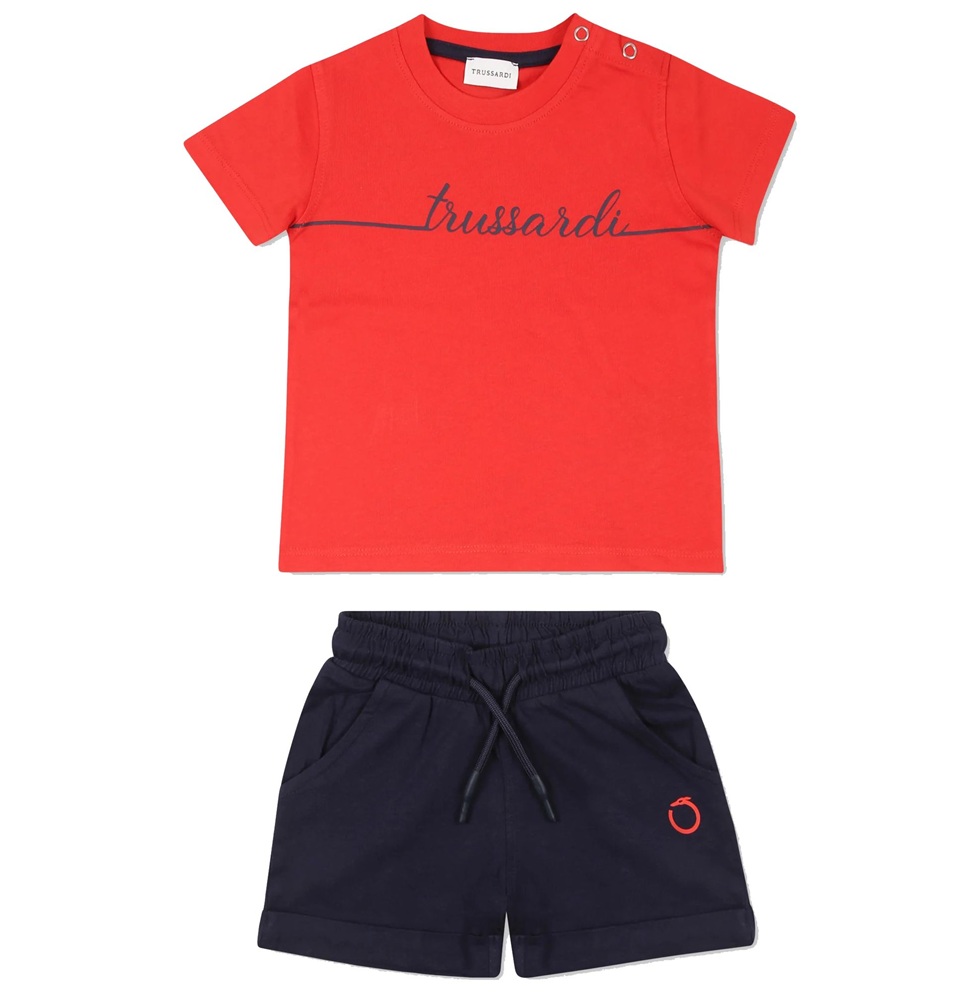 Completo 2 pezzi composto da: t-shirt manica corta con stampa logo e bermuda a contrasto in coordinato