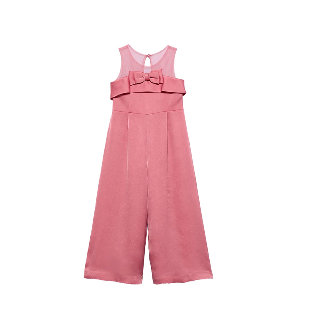 Jumpsuite smanicata tinta unita con fiocco decorativo e apertura posteriore, modello fit wide leg