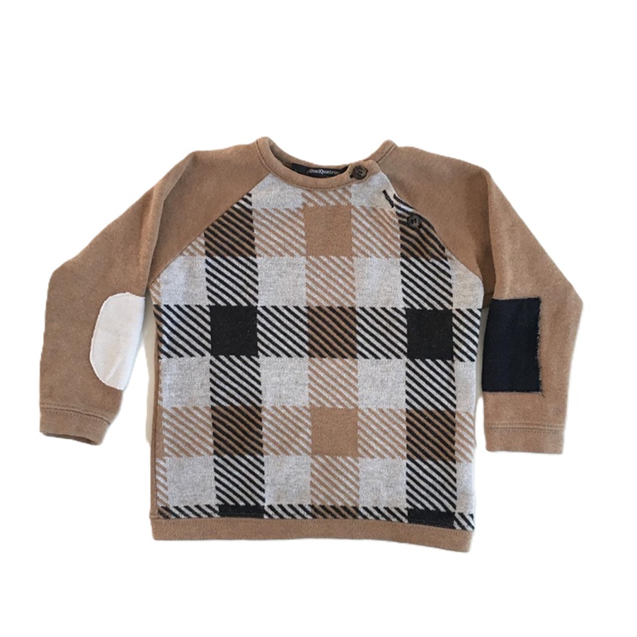 Maglia maniche lunghe con toppe e fantasia quadri anteriore con chiusura bottoni