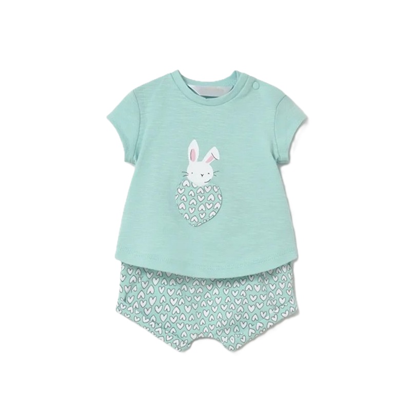 completo composto da t-shirt manica corta con stampa coniglietto e shorts in coordinato