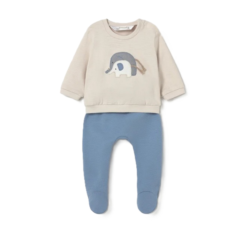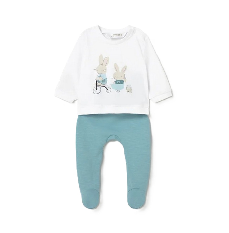 completo composto da t-shirt a manica lunga con stampa coniglietti/elefante/ricamo stella e ghettina in coordinato