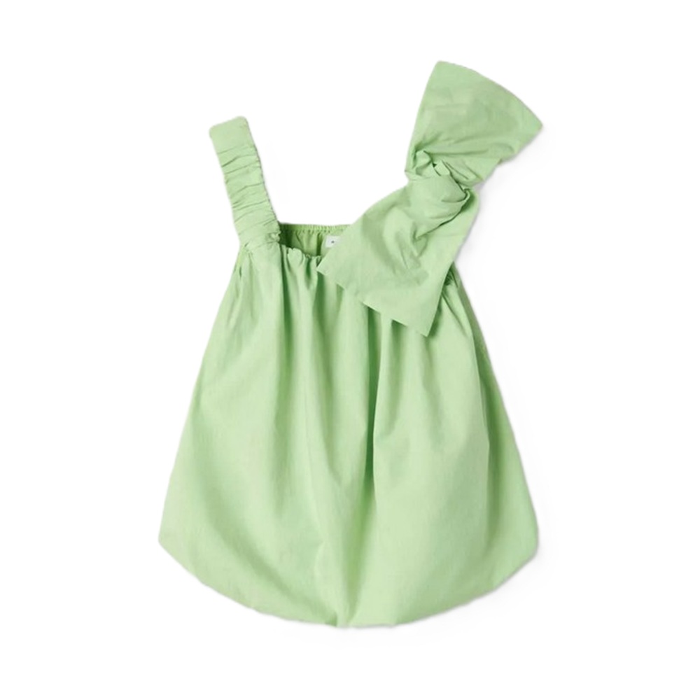 top in tinta unita , modello palloncino, spalline elastiche con fiocco