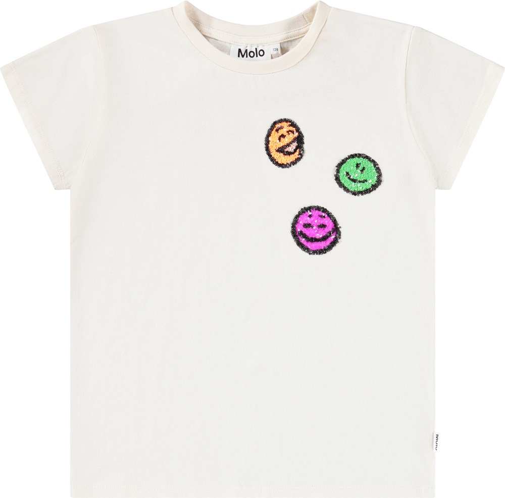 T-shirt manica corta tinta unita con smile paillettes