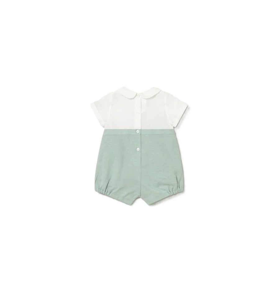 Pagliaccetto bicolore con pinces e ricamo anteriore a contrasto