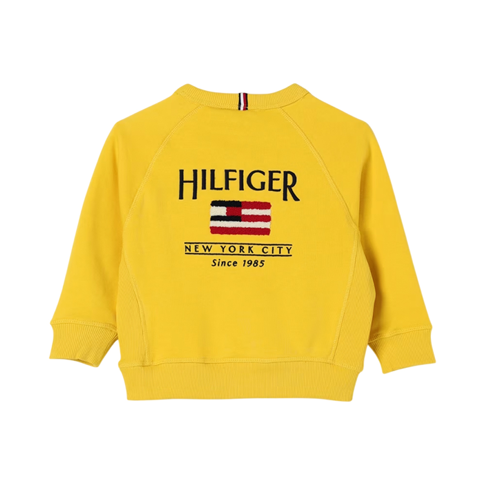 Felpa tinta unita con ricamo bandiera anteriore a contrasto e ricamo posteriore