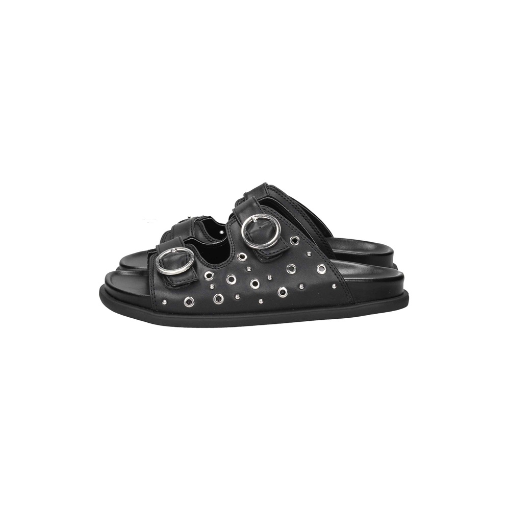 ciabatte tinta unita con doppia fibbia e borchie laterali