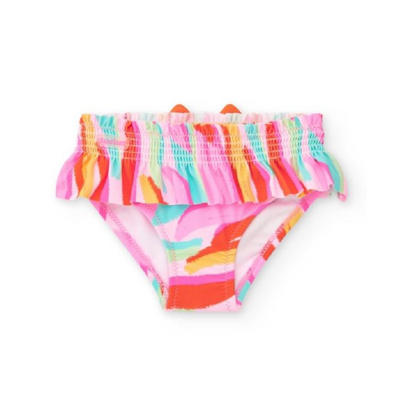 slip mare multicolore con fascia elastica in vita e gattino in rilievo sul retro