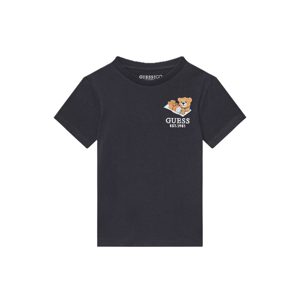 T-shirt manica corta con ricamo teddy a contrasto frontale