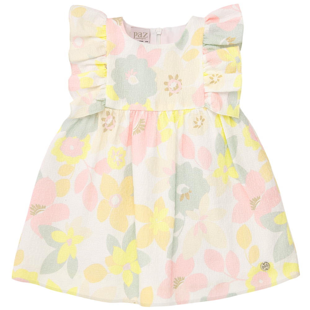 Vestito Ricamo Fiori 12 Mesi/bianco-beige
